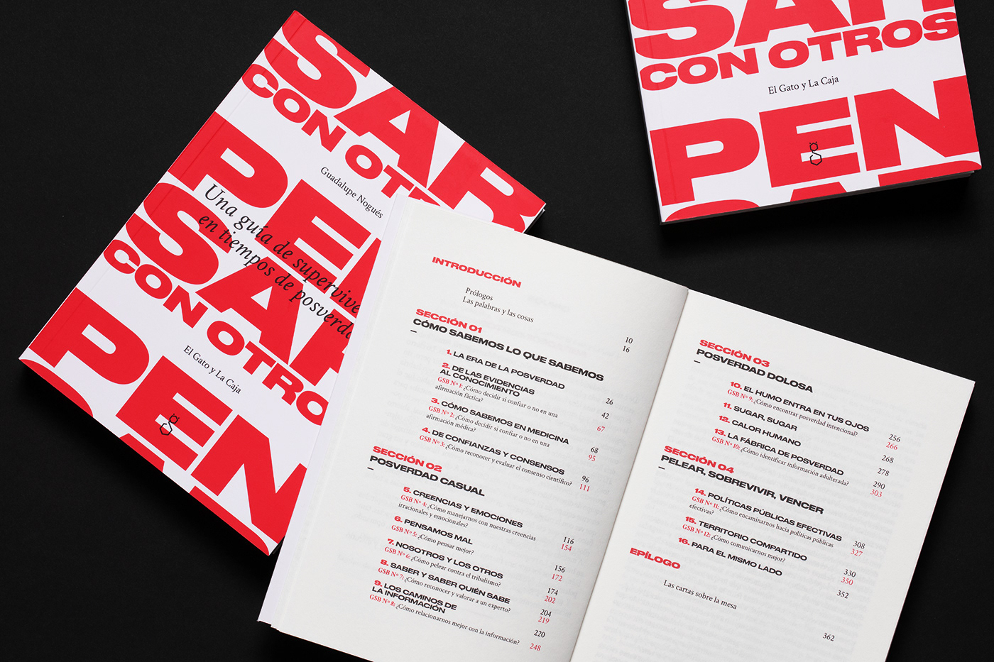 We design PENSAR CON OTROS for El Gato and La Caja, where through different typographical and editorial resources we generate a vibrant and attractive visual rhythm throughout the book.
